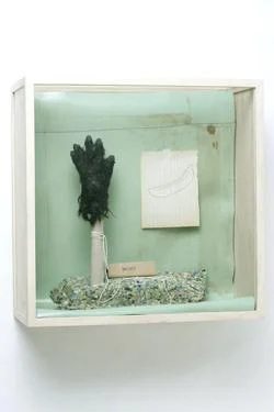 Of course, in grand Duchampian fashion, it was the viewer who was called upon to complete the story implied by this reliquary display of semi-related clues. Complicating matters was the fact that another six objects were placed around the gallery as if to suggest that the whole exhibition should be read as a diorama--a much larger one containing both the disquieting objects and the viewer. All seemed to await, and resist, translation into a codified narrative. Like those inside the cases, the other objects were presented as if they were unfinished. A toy-sized wood carving of a giraffe, for example, titled Whittled Away (2006), was surrounded by shavings, as if left over from its incomplete manufacture.